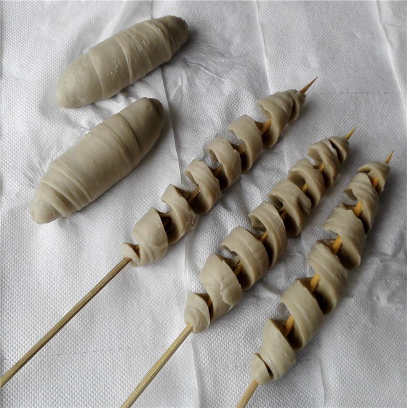 面筋在有的地方是過年一道不可或缺的涼菜,不過更受歡迎的是洗面筋剩下的面水做的——小火熬個(gè)把小時(shí)熬干水到半熟,再壓成小一扎寬一厘米厚的長片和面筋一起蒸,最后晾涼之后一刀挨著一刀練成薄片,油潑辣子一澆,蘋果醋一淋,筷頭蘸幾滴芥末,指尖捏幾撮細(xì)鹽,攪拌均勻。