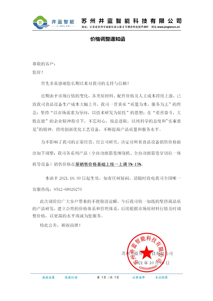 價(jià)格調(diào)整通知函